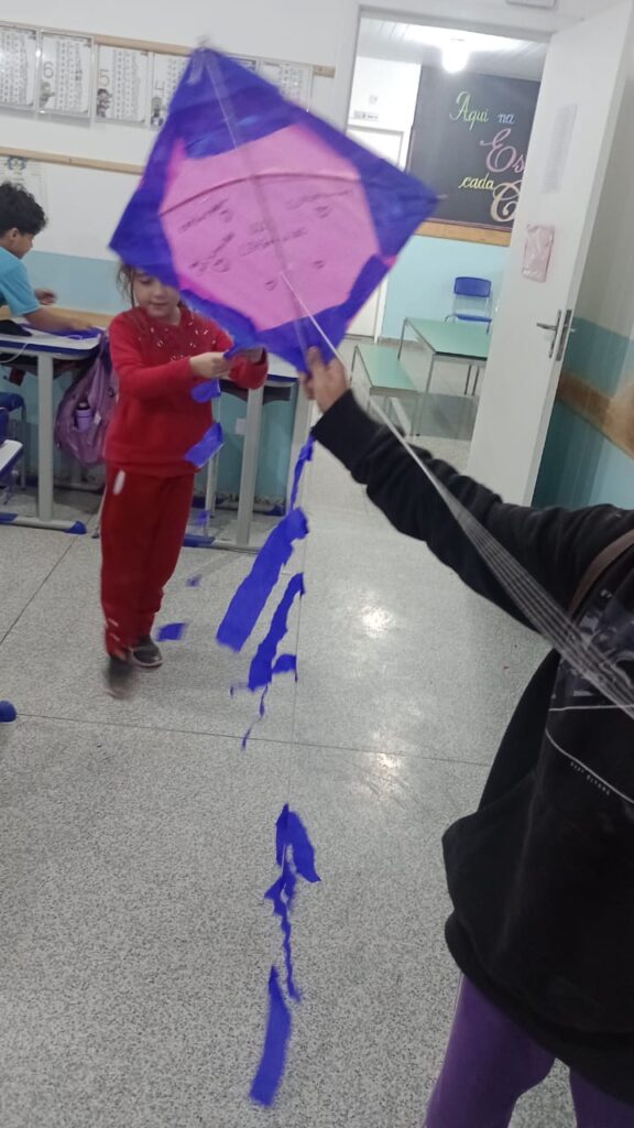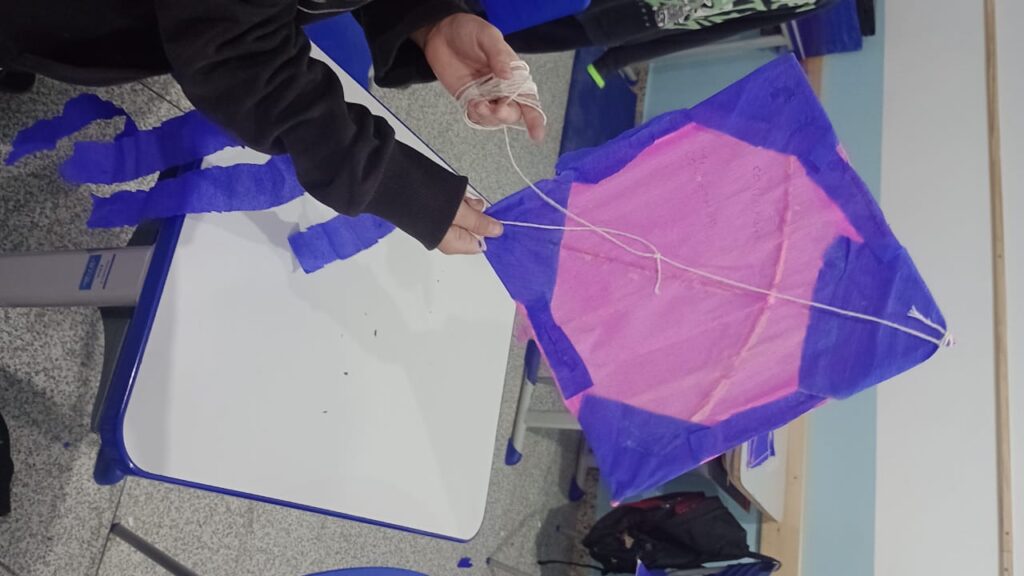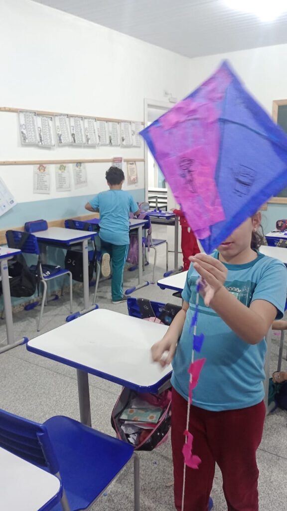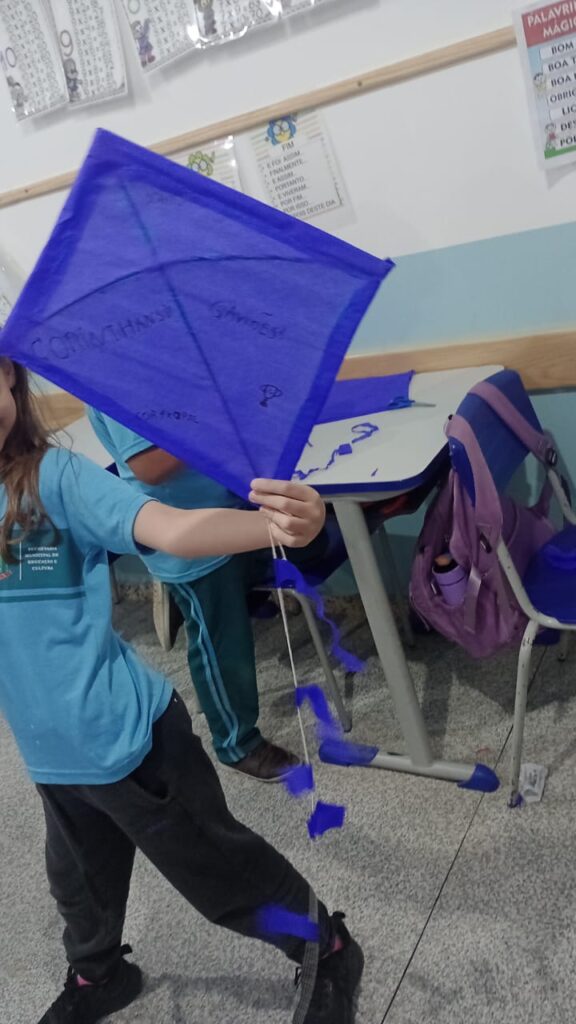Além de despertar a imaginação e a criatividade, a confecção das pipas também favoreceu o desenvolvimento da coordenação motora e das habilidades manuais dos estudantes, tornando o aprendizado mais prazeroso e significativo.