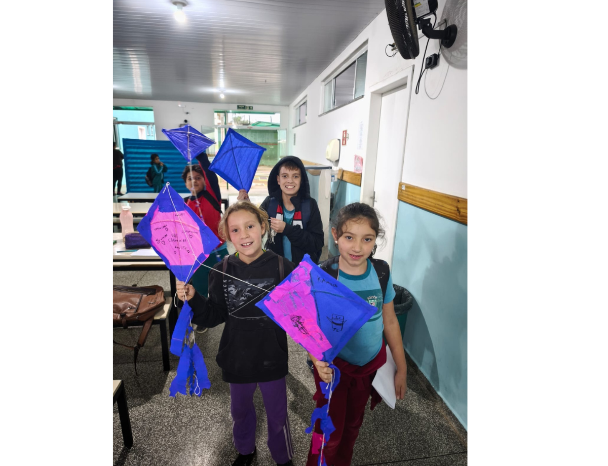 Além de despertar a imaginação e a criatividade, a confecção das pipas também favoreceu o desenvolvimento da coordenação motora e das habilidades manuais dos estudantes, tornando o aprendizado mais prazeroso e significativo.