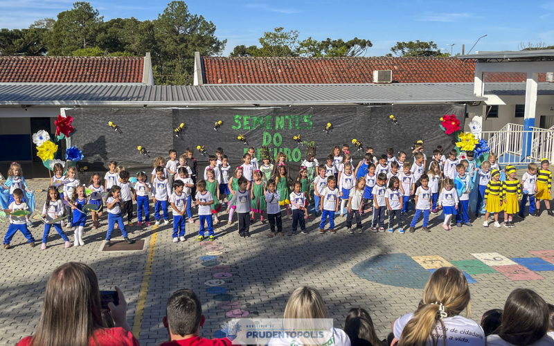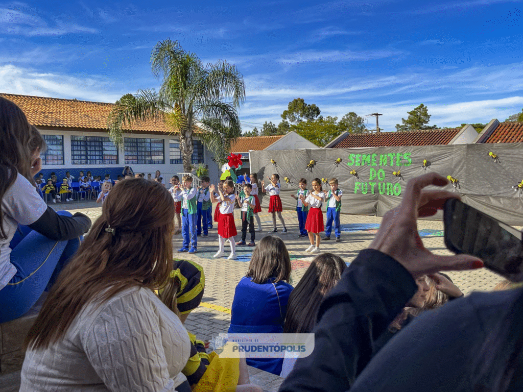 O evento contou com apresentações culturais da Educação Infantil, que caprichou no figurino e na encenação sobre a importância de cuidar da Terra. Já os alunos do 2º ano encantaram o público com uma interpretação em Libras, em homenagem ao Dia Nacional do Surdo (26 de setembro), reforçando a inclusão e o respeito à diversidade.