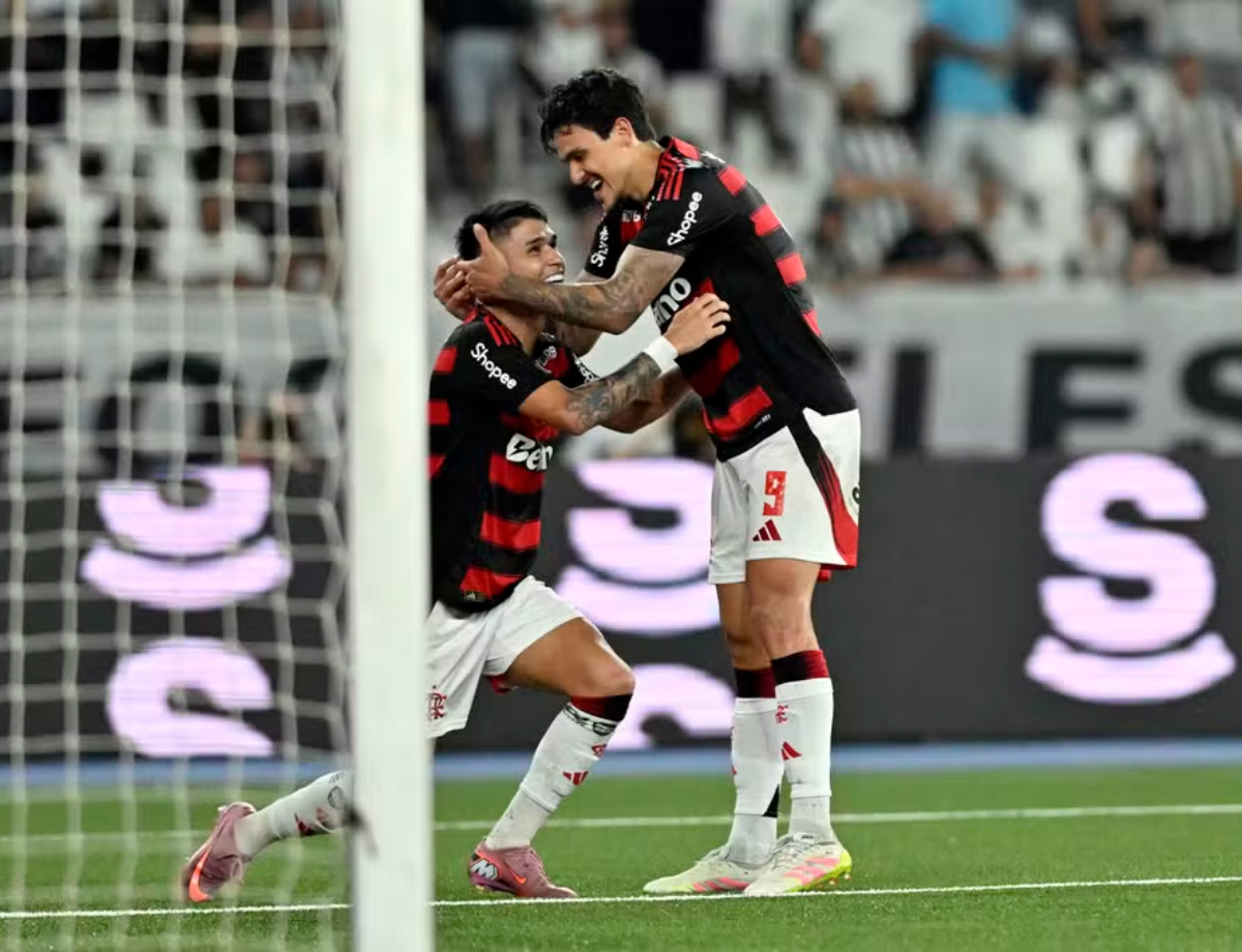 É possível dizer que o primeiro gol do Flamengo aconteceu no momento em o Botafogo tentava desequilibrar a partida. E foi nessa hora que a qualidade individual pesou. Aos 39 minutos, Arrascaeta recebeu de costas, girou sobre a marcação, conduziu e tocou para Pedro já posicionado na entrada da área. O camisa 9 dominou e chutou no canto esquerdo.