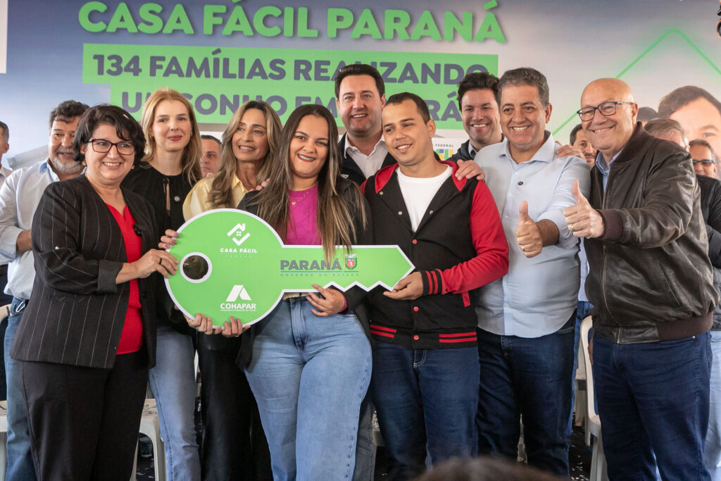 “O Casa Fácil é o maior programa habitacional do Brasil. Já construímos e estamos entregando mais de 100 mil moradias, não tem nada igual no País. Só neste mês de julho, estamos entregando cinco mil casas no Paraná com um diferencial: o Estado banca a entrada para as famílias com renda de até quatro salários mínimos para que a parcela fique menor e seja possível o financiamento”, destacou Ratinho Junior.