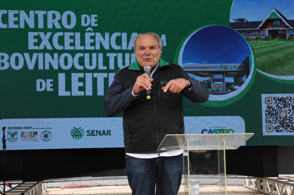 Em seu discurso, o presidente interino do Sistema FAEP, Ágide Eduardo Meneguette, destacou que a instalação do Centro de Excelência em Leite no Paraná é fruto de uma união de esforços, iniciada em julho de 2024. Na ocasião, após ter realizado uma missão de relacionamento institucional em Brasília, o Sistema FAEP iniciou uma articulação para que o Paraná fosse escolhido para sediar o complexo educacional. A partir disso, aderiram à iniciativa parceiros como o Sindicato Rural de Castro, a prefeitura local e a cooperativa Castrolanda.