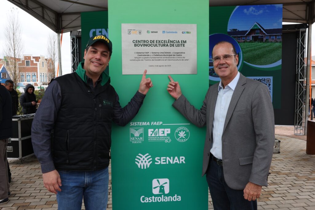 Em seu discurso, o presidente interino do Sistema FAEP, Ágide Eduardo Meneguette, destacou que a instalação do Centro de Excelência em Leite no Paraná é fruto de uma união de esforços, iniciada em julho de 2024. Na ocasião, após ter realizado uma missão de relacionamento institucional em Brasília, o Sistema FAEP iniciou uma articulação para que o Paraná fosse escolhido para sediar o complexo educacional. A partir disso, aderiram à iniciativa parceiros como o Sindicato Rural de Castro, a prefeitura local e a cooperativa Castrolanda.