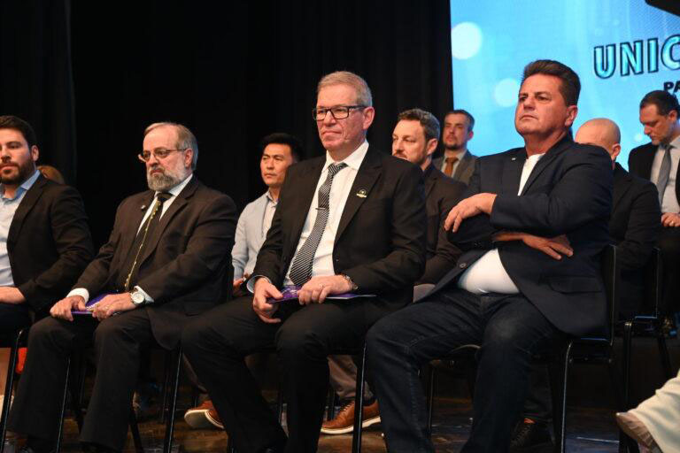 PRESENÇAS – Estiveram presentes no evento reitores e vice-reitores das sete universidades estaduais do Paraná, além de representantes do Instituto Federal de Educação, Ciência e Tecnologia do Paraná, da Universidade Tecnológica Federal do Paraná (UTFPR) e da Universidade Federal da Fronteira Sul (UFFS), da Fundação Araucária e do Instituto de Tecnologia do Paraná, bem como membros do executivo e legislativo municipal.