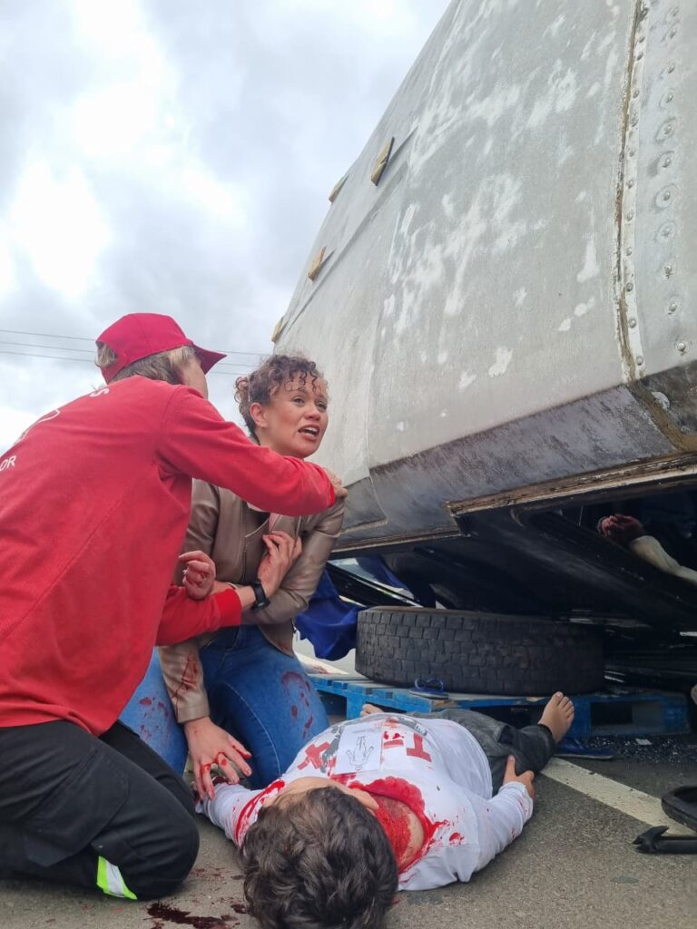 Além dos profissionais, estudantes e colaboradores, os figurantes também tiveram destaque no simulado. Luana de Fátima Candeu, que trabalha no Centro de Comando Operacional da Via Araucária, simulou uma mãe com filho gravemente ferido no acidente. Para ela, a vivência foi marcante. “Trabalhamos acompanhando incidentes à distância, mas estar do outro lado, sentindo a emoção e o desespero, foi uma experiência que levarei para a vida. Isso mostra que, em situações reais, pessoas não capacitadas podem atrapalhar o trabalho dos socorristas”, relatou.