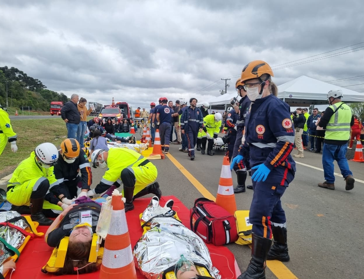 O coordenador da Área de Segurança do Trabalho e Segurança Viária da Via Araucária, Ismael Pires, detalhou que o cenário foi planejado para ter alta complexidade. “Unimos um veículo de grande porte transportando produto perigoso e um ônibus lotado de passageiros. A ideia é aproximar ao máximo de um acidente real, garantindo que as equipes estejam prontas para atuar com segurança. Além disso, a simulação serve para treinar protocolos de estabilização do veículo antes de retirar as vítimas”, disse.